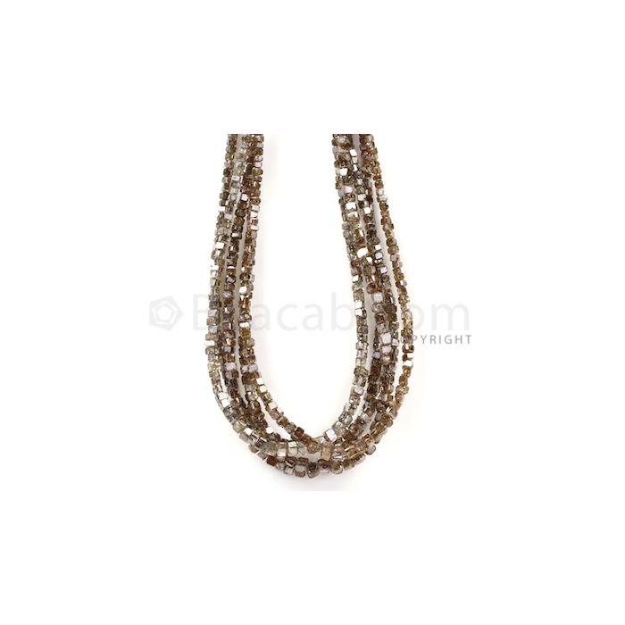 5 Lines - Champagne Diamond Cube Beads - 91.19 cts - 1.5 to 3 mm (BRNDIA1021)