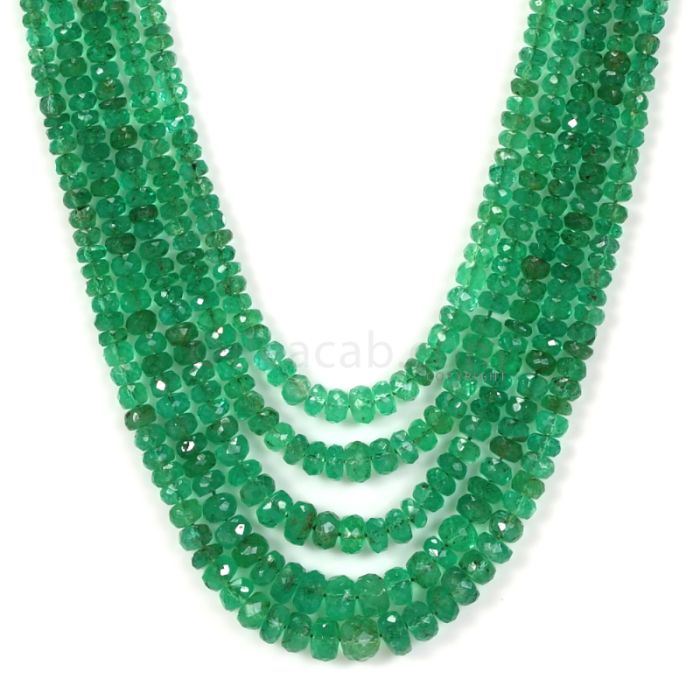 5 Lines - Medium Green Emerald Faceted Beads - 123.50 - 2.2 to 5.5 mm (EMFB1050)