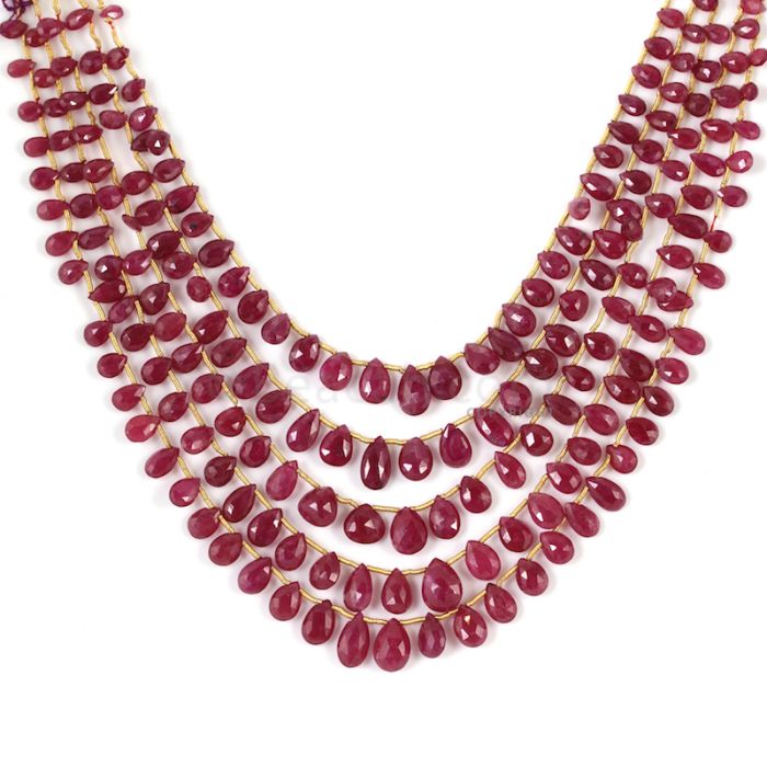 5 Lines - Medium Red Ruby Faceted Drops - 210.50 cts - 3.6 x 5.4 mm to 7.3 x 10.5 mm (RDR1047)