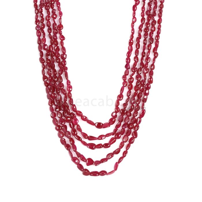 5 Lines - Medium Red Ruby Tumbled Beads - 192.39 cts - 2.3 x 2.5 mm to 4.6 x 7.1 mm (RTUB1007)