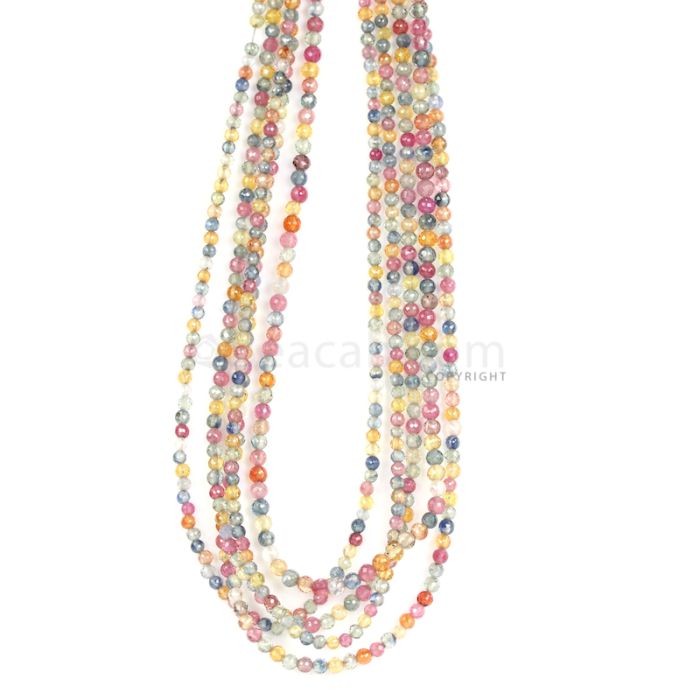 5 Lines - Medium Tones Multi Sapphire Faceted Beads - 171.00 cts - 2.6 to 3.2 mm (MSFB1054)
