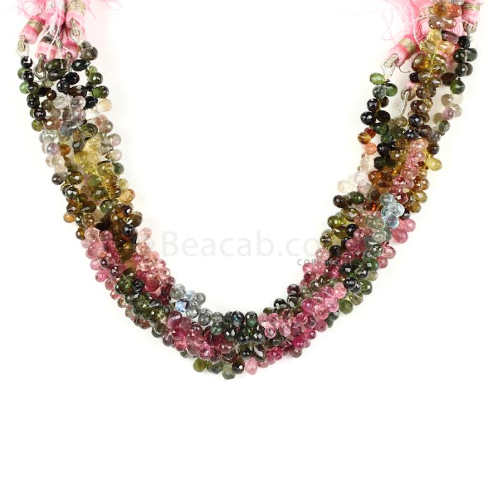 5 Lines - Medium Tones Multi-Tourmaline Faceted Drops - 267.50 cts - 5.5 x 3.2 mm to 6.8 x 3.9 mm (MTFD1180)