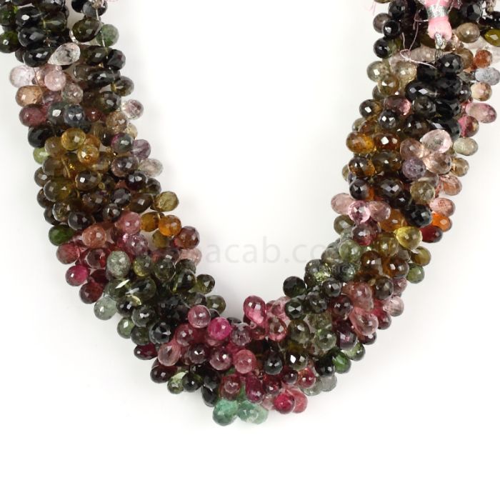5 Lines - Medium Tones Multi-Tourmaline Faceted Drops - 676.50 cts - 4.8 x 7 mm to 5.5 x 8 mm (MTFD1174)