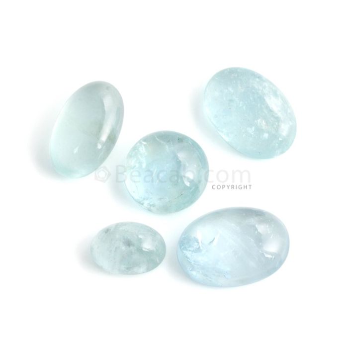 5 Pcs - 63.56 ct. -Medium Blue Aquamarine Mix Cabochon - 21.1 x 15 x 7.2 mm to 13.9 x 10 x 6.2 mm (AQCAB1080)