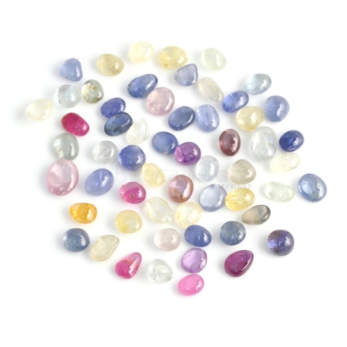 58 Pcs - Medium Tones No Heat Multi-Sapphire (Ceylon) Tumbled Cabochons - 183.21 cts. - 8.5 x 7.3 mm to 12.6 x 10.1 mm (MSFF1013)