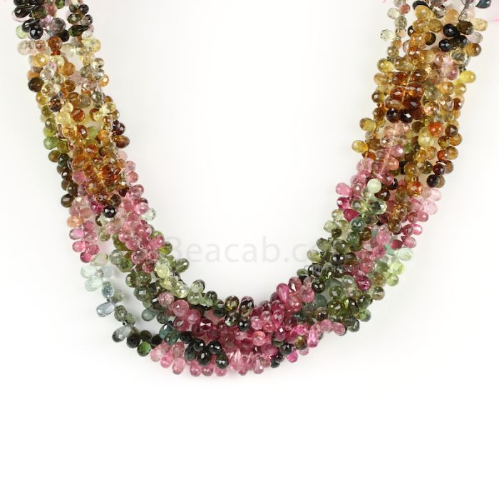 6 Lines - Medium Tones Multi-Tourmaline Faceted Drops - 287.50 cts - 3.4 x 4.2 mm to 4.2 x 6.4 mm (MTFD1172)