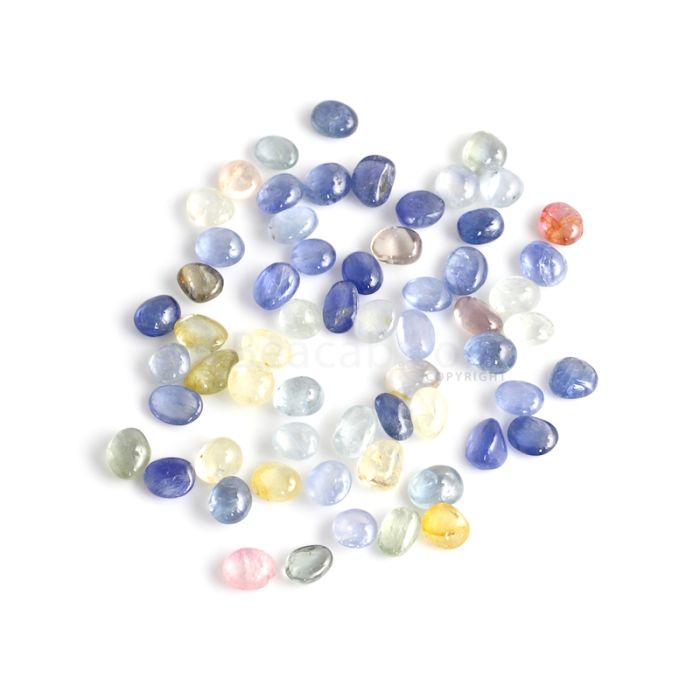 61 Pcs - Medium Tones No Heat Multi-Sapphire (Ceylon) Tumbled Cabochons - 155.13 cts. - 7.7 x 7 mm to 9.5 x 6.3 mm (MSFF1018)