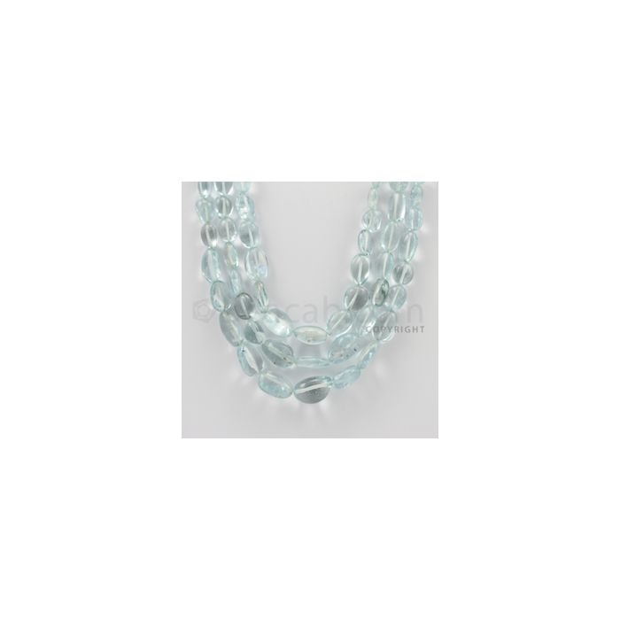 7.00 to 17.00 mm - Aquamarine Tumbled Beads - 609.00 Carats - 3 Lines (AqTuB1021)