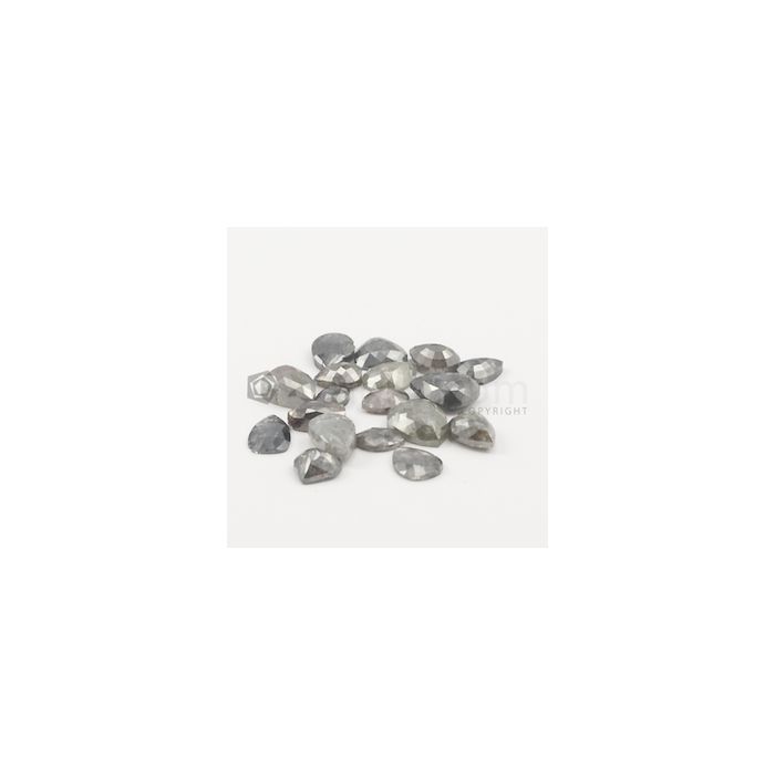 7.50 x 5.50 mm to 11.50 x 8.50 mm - Medium Gray Pear Shaped Rose Cut Diamond - 29.28 carats (FncyDiaRC1107)