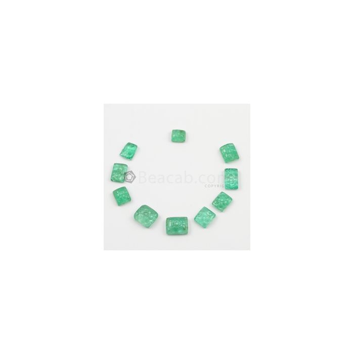 7.50 x 6.50 mm to 11 x 9 mm - Medium Green Emerald Carving - 10 pieces - 27.04 carats (EmCar1084)