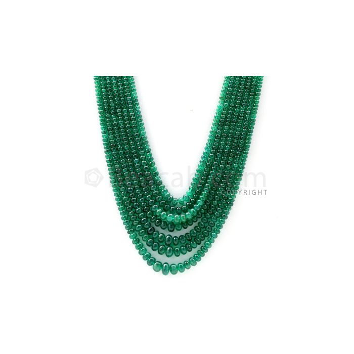 7 Lines - 2.90 to 7.70 mm - Dark Green Emerald Smooth Beads - 324 cts. (EMSB1047)