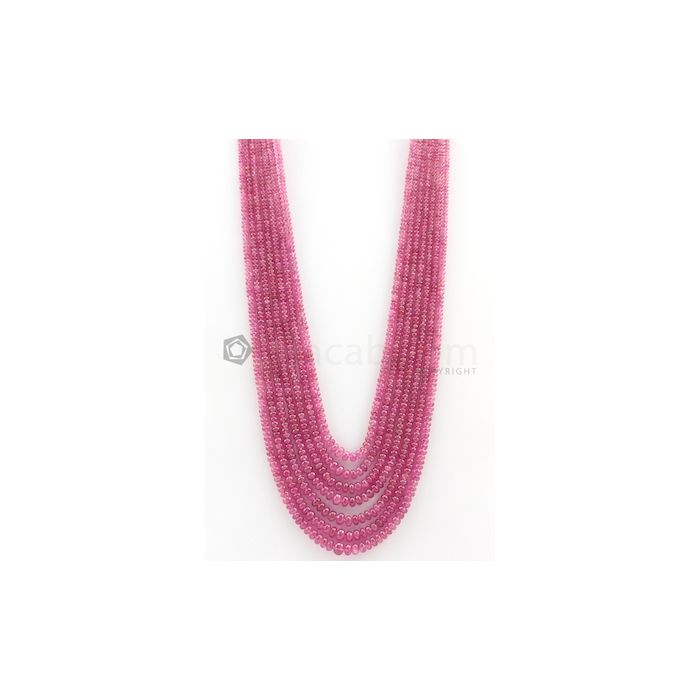 7 Lines - 3.20 to 6.80 mm Medium Pink Color Pink Sapphire Smooth Gemstone Beads - 482.4 carats (PnSPB1004)