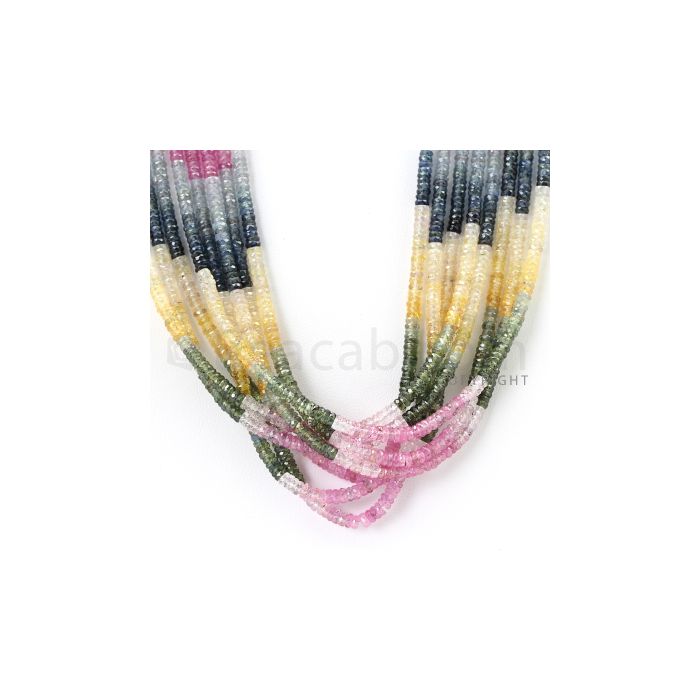 8 Lines - 3.7 mm - Medium Tones Multi Sapphire Faceted Beads - 563.00 cts. (MSFB1038)
