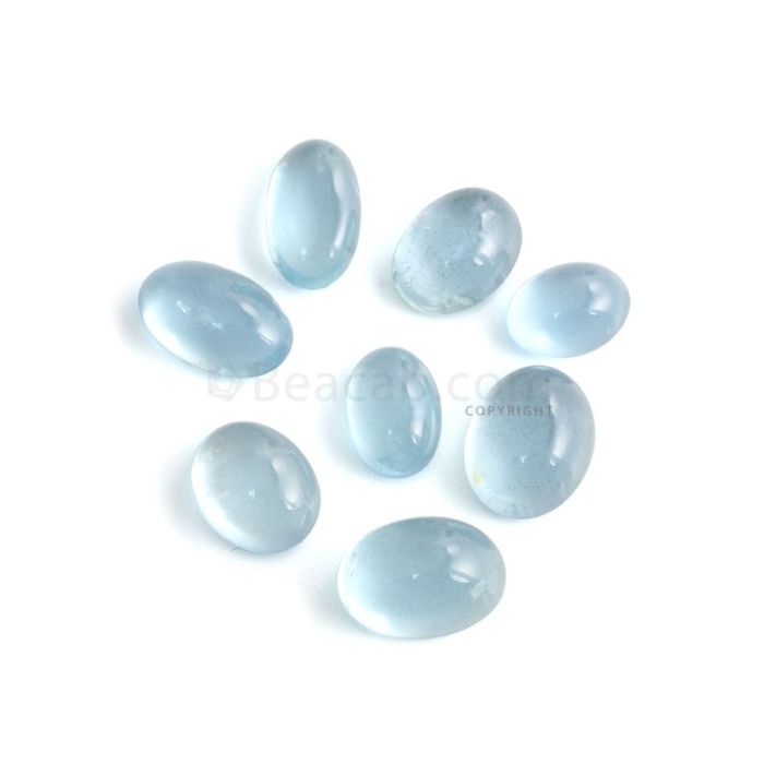 8 Pcs - 40.12 ct. -Medium Blue Aquamarine Oval Cabochon - 10.9 x 8.1 x 5.3 mm to 14.2 x 10.3 x 7.7 mm (AQCAB1071)