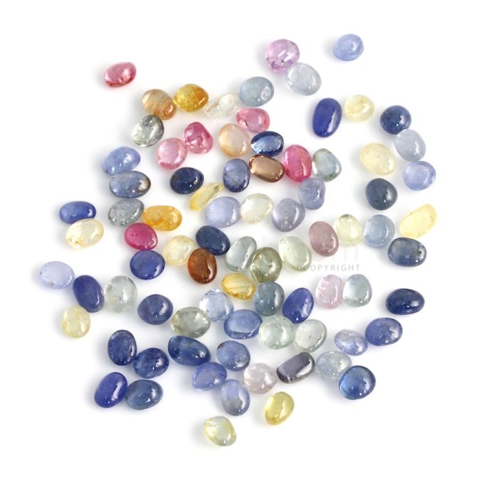 82 Pcs - Medium Tones No Heat Multi-Sapphire (Ceylon) Tumbled Cabochons - 172.79 cts. - 7.3 x 5.2 mm to 9.6 x 6.2 mm (MSFF1011)