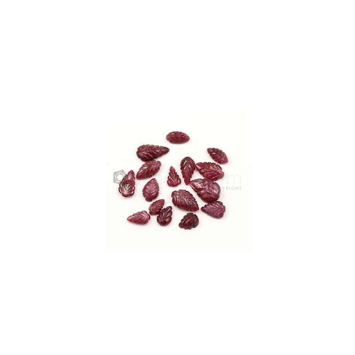 9.50 x 6 mm to 14 x 8 mmm - Medium Red Ruby Leaf Shape Carving - 17 piece - 38.66 carats (RCar1035)