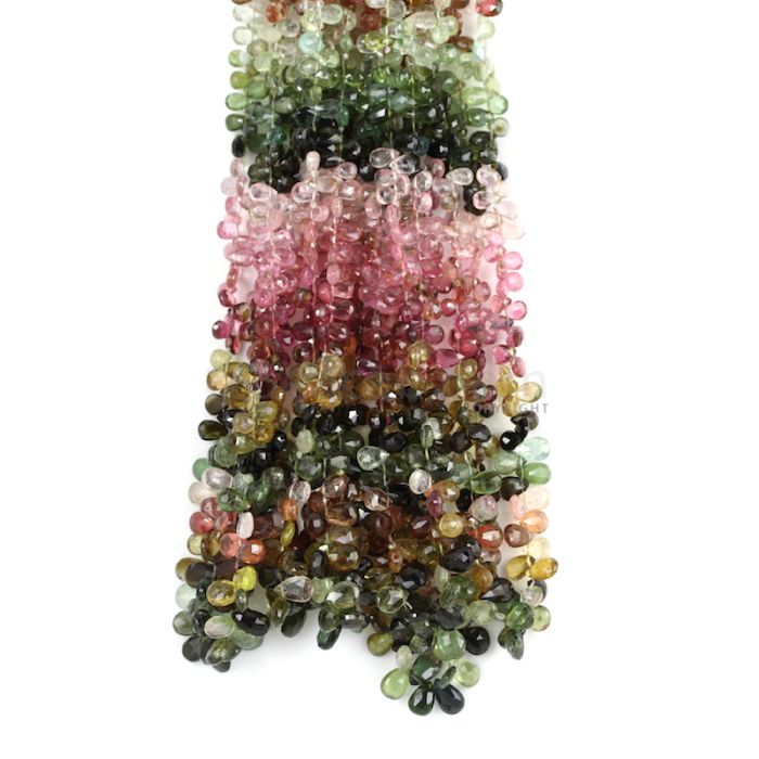 9 Lines - Medium Tones Multi-Tourmaline Faceted Drops - 591.96 cts - 4.1 x 3 mm to 7.8 x 4.9 mm (MTFD1186)