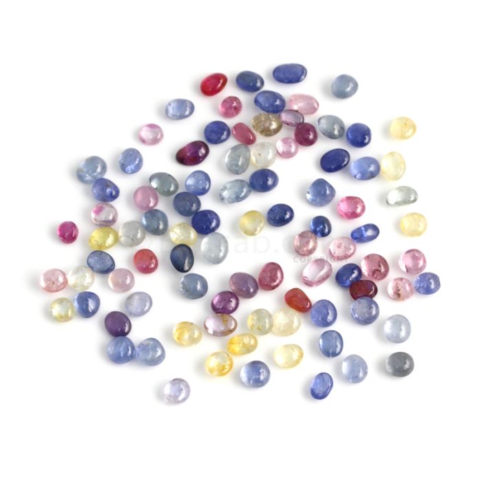 92 Pcs - Medium Tones No Heat Multi-Sapphire (Ceylon) Tumbled Cabochons - 135.82 cts. - 6.2 x 3.9 mm to 7.9 x 5.2 mm (MSFF1012)